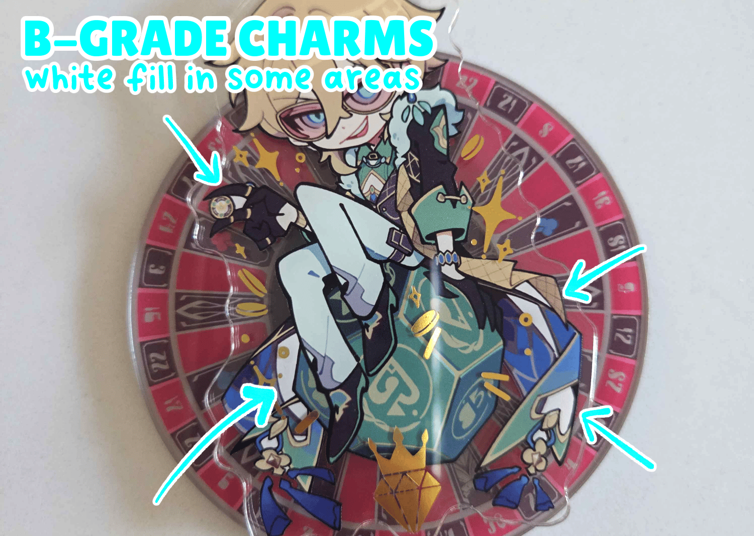 B-GRADE: B-grades have slight white fill in a few areas - see picture. The spinner and print are otherwise identical to A-grades.
